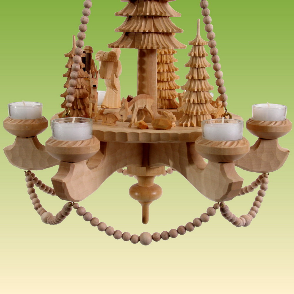 Hängepyramide, vollständig handgeschnitzt, natur