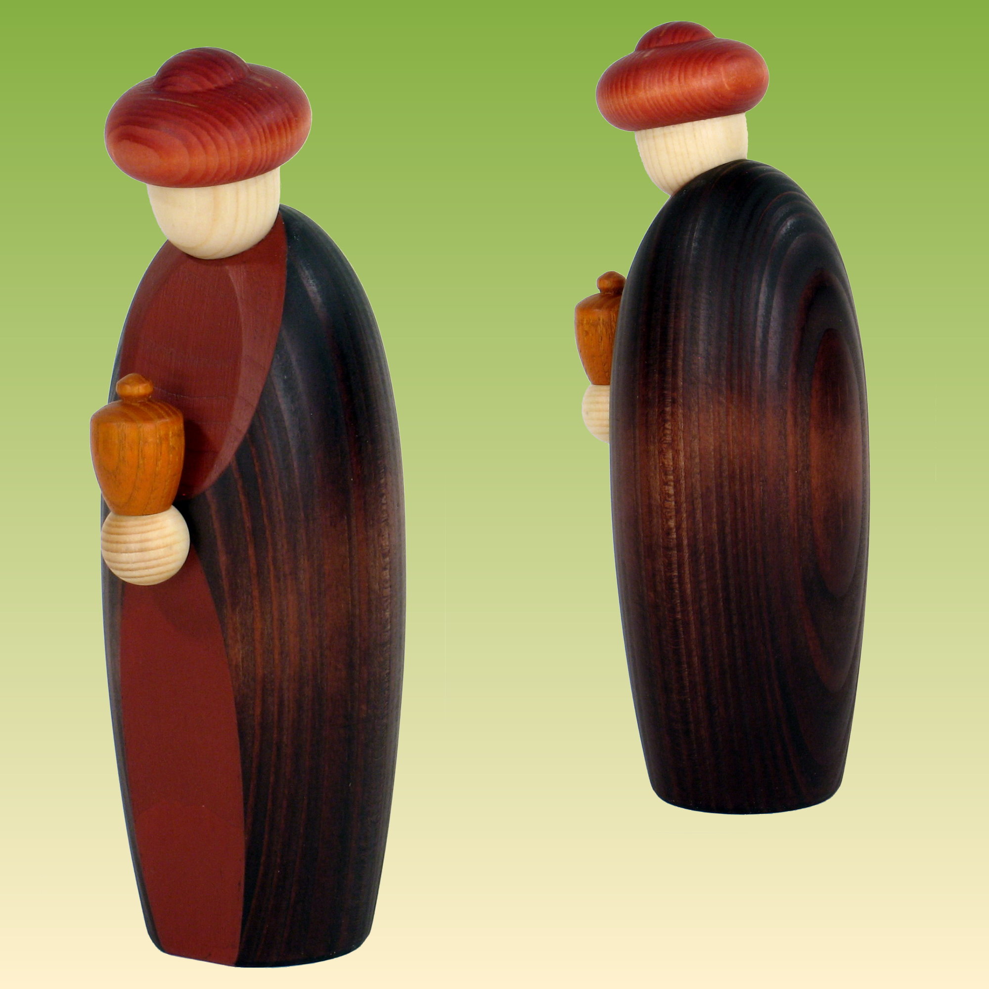 aus Fichte gedrechselt und farbig lasiert